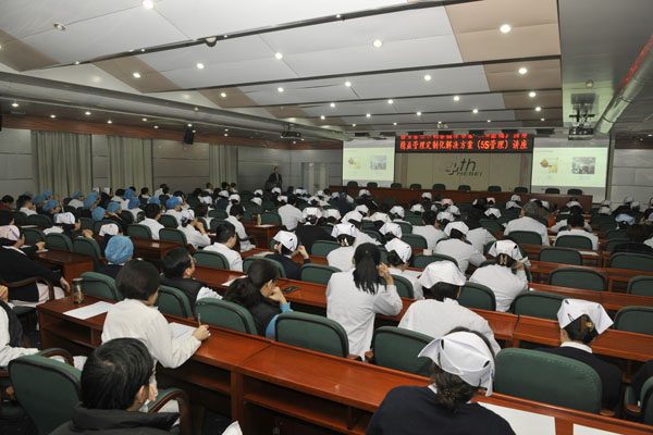 会议由王贵英副院长主持,她强调了本次讲座的目的和重要性。单保恩院长介绍了我院自启动5S管理工作以来的实施进展情况,并指出5S(整理、整顿、清扫、清洁、素养)这10个字内容十分广泛,但是如何具体做?如何做的更好?如何进行成效考评?考核的关键是什么?这些并不是特别清楚。带着这些疑问,请精益管理团队的专家为大家进行现场讲解。