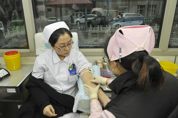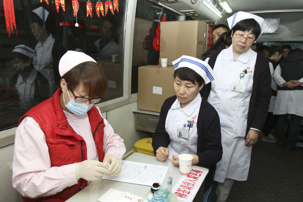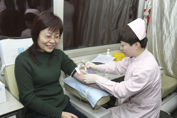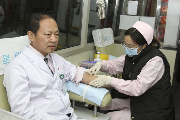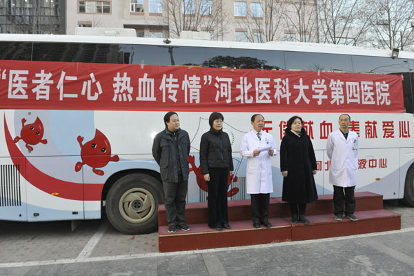 1月23日,我院与河北省血液中心组织了集体无偿献血活动。伴随着省血液中心献血车缓缓驶入我院,一场以“医者仁心,热血传情”为主题的无偿献血活动拉开序幕。我院干部职工以身作则,用实际行动弘扬以“仁爱、人道、奉献、和谐”为内涵的无偿献血文化。单保恩院长、王贵英副院长和省血液中心副主任陈莉等出席活动,当日献血人次达76人,共计118个单位,23600毫升。省血液中心向我院授予了锦旗。