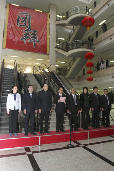 2月3日清晨,我院在本部门诊大厅举行了春节团拜会,向全院职工、学生、患者及家属拜年,全体在院领导参加。
