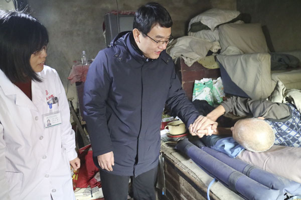 1月29日,何宏涛副院长与宁养院张静主任一行6人,来到石家庄行唐县探访慰问了当地的贫困癌患家庭,为他们带去米、面、油等慰问品和新春的祝福。