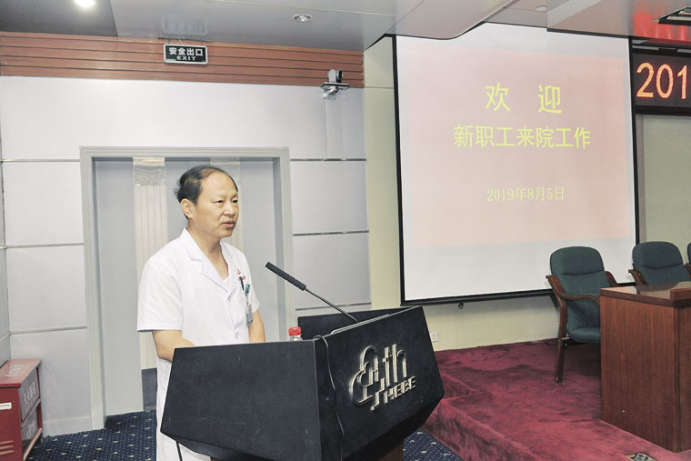 培训伊始,单保恩书记代表医院领导班子及全院教职员工对新职工的到来表示热烈欢迎。单书记向新职工系统地介绍了我院的发展历程、基础设施建设、医疗与教学工作取得的辉煌成就等情况。他通过讲述几个饱含哲理的小故事,对如何做一名合格的医务人员,如何把事情做到最好进行了全面而深刻地讲解,使新职工受益匪浅,单书记的敦敦教诲令新职工们深受感动与鼓舞。随后,赵群副院长对全体新职工提出了殷切的希望,告诫大家要立足本职工作,并以此为崭新的起点,用智慧和汗水谱写绚丽的华章。