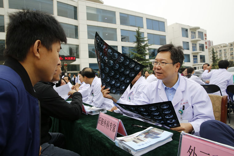 当日,在我院副院长、肝胆外科专家彭利教授和东院副院长、泌尿外科专家张爱莉教授的带领下,我院乳腺外科齐义新、外二科何景利、外三科王力利、耳鼻喉科葛俊恒、神经外科李建峰、骨科张进明、眼科张萌、口腔科张素欣、胸外科田子强、麻醉科徐红萌、呼吸内科葛晖、肾内科张惠然、内分泌科王原、消化内科殷飞、神经内科赵静霞、心内科刘亚林、血液内科刘丽宏、放射介入科杨光、妇科郝淑维、中医科刘淑刚、肿瘤内科姜达、产科张惠欣、生殖医学科刘复全、疼痛康复科张静、儿科刁玉巧、全科医学科郭军平、CT磁共振科许茜、皮肤科王文氢、重症医学科赵钗等30余位专家教授在门诊广场上为群众免费提供健康咨询服务,许多疑难病例还现场进行了“MDT”讨论。护理部刘风侠副主任以及郝秀乔、王建新、侯晓娟三位护士长现场为群众免费测量血压、血糖,解答关于PICC维护和输液港的相关问题。