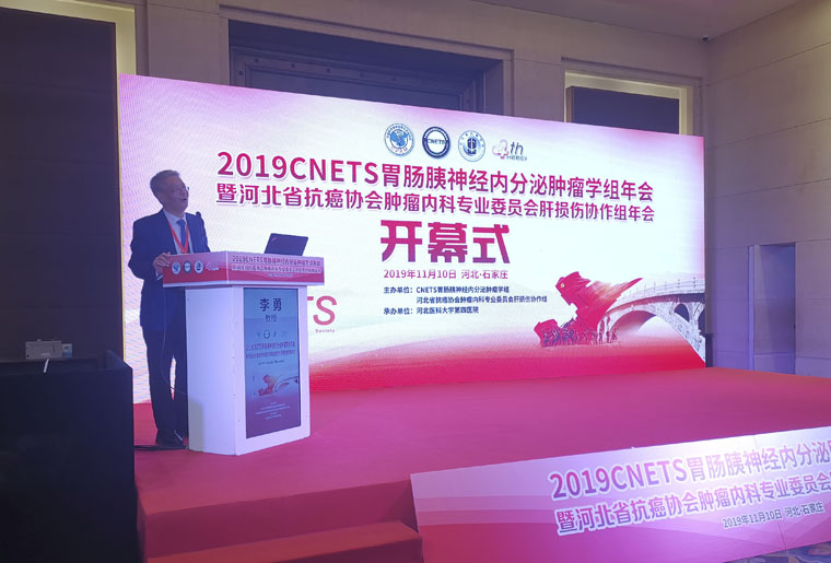 2019CNETS胃肠胰神经内分泌肿瘤学组年会暨河北省抗癌协会肿瘤内科专业委员会肝损伤协作组年会于11月10日在石家庄召开。本次会议由CNETS胃肠胰神经内分泌肿瘤学组、河北省抗癌协会肿瘤内科专业委员会肝损伤协作组主办,国家癌症中心、中国医学科学院肿瘤医院赵东兵教授、我院李勇教授担任大会名誉主席,我院殷飞教授为大会主席。省内专业同仁200余人参会。