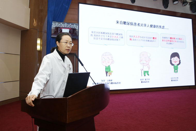 家住长安区74岁的王奶奶是从妊娠糖尿病发展为糖尿病的,她的孙子生下来是巨大儿,儿媳妇是不是也有糖尿病风险?和王奶奶同来听讲的65岁张大爷也有同样的焦虑,他本身就是糖尿病患者,而他的大儿子在45岁也发展为糖尿病,那他的小儿子也会患糖尿病吗?