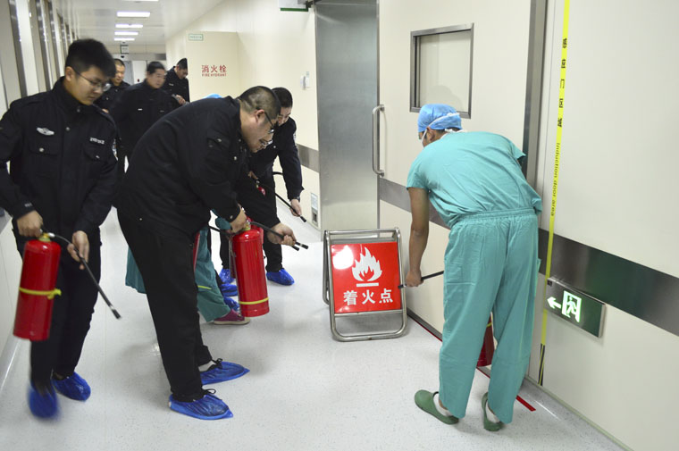 手术室是医院重要的组成部分之一,也是火灾扑救和逃生的难点,尤其在手术进行的过程中。11月8日下午5点,在全国消防日来临之际,由保卫处姚川处长带队指导,麻醉一科、麻醉二科、胸六科、手术室共同进行了一场火灾应急演练,意在加强我院手术室火灾扑救和安全转移病人的能力。