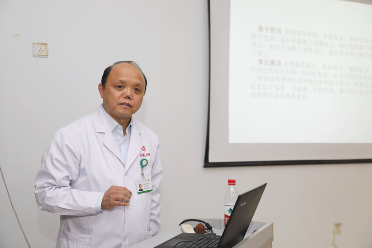 11月26日,肿瘤内科召开全员会议,科室100余人参加。肿瘤内科主任姜达教授向全科人员分享了我院党委书记、院长单保恩教授在“中层干部聘任大会”上所做的《“不忘初心、牢记使命”做党和人民需要的好干部》精彩课件。