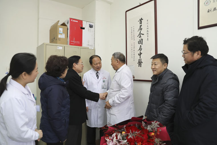 岁末年初,春节将至。1月22日上午,河北省卫生健康委员会副主任、河北省中医药管理局副局长段云波一行来到我院中医科门诊,在我院党委书记单保恩的陪同下,看望慰问了全国名中医、我院中医科刘亚娴教授以及刘亚娴名医工作室的几位专家。