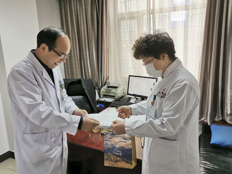 2月3日,张燕将所购的5套防护眼镜捐赠给医院。她表示,此次有幸购买了几个防护眼镜,虽然数量不多,但希望能为我院最需要的同志送上一份安全。作为一名共产党员及皮肤科的一线临床医师,她深深地被奔赴抗疫前线战友们的奉献精神所感召,希望能有机会亲赴抗疫一线,为打赢这场疫情防控阻击战贡献力量。