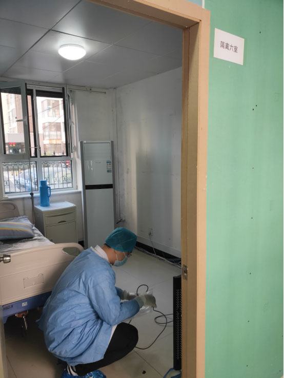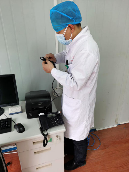初三接到紧急通知,东院区也按照上级要求建立发热门诊和隔离病房。有了前期的经验,后面建设会更加顺畅,大家齐心协力,加班加点,只用了半天时间就调试好了东院所有的系统和设备,保障了一线医护人员的使用。