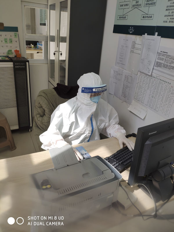 2月20日,第二批医护人员正式进驻医院发热门诊,白海威医师主动请战,战斗在医院抗“疫”一线。他与其他4名医生在本部发热门诊轮班,每人连续工作6个小时。为了节省物资,值班期间不喝水、不进食、不去厕所,甚至接班前2至4个小时就停止进食水。