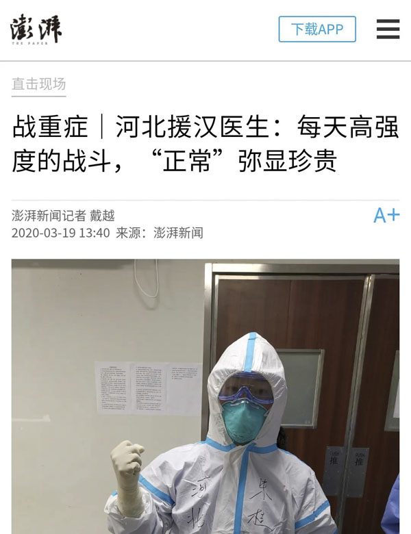 医疗设备和防护物资的短缺也令他们无力,当时只有呼吸机,没有ECMO。“初期时我申请了一台血液净化设备,在我到武汉第25天时才拿到。”朱桂军告诉澎湃新闻,早期时医护人员的防护服等物资也十分紧缺,他从河北出发时,其所在的河北医科大学第四医院为队伍贡献了100套防护服——当时该院总共也只有200套。即使这样,还是难以维持。为了最大限度节省防护装备,朱桂军给队伍制定了6小时轮班制度,医护人员6小时一轮班,医疗队员们6个小时不吃不喝不去厕所。