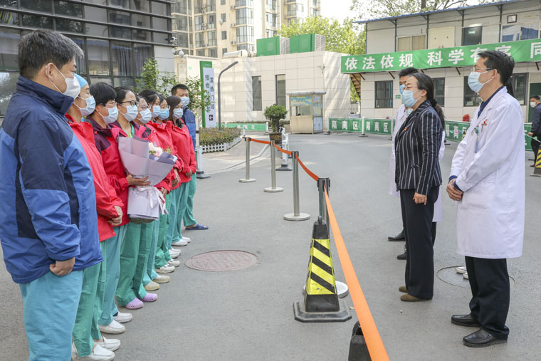 近日,我院党委副书记李晓玲和副院长耿翠芝、刘运江、东院副院长张爱莉带领相关职能部门负责人代表医院党委分别在本部和东院看望慰问了第四批进驻发热门诊的医护人员,对他们积极主动、顾全大局、勇挑重担的精神表示敬意与感谢。