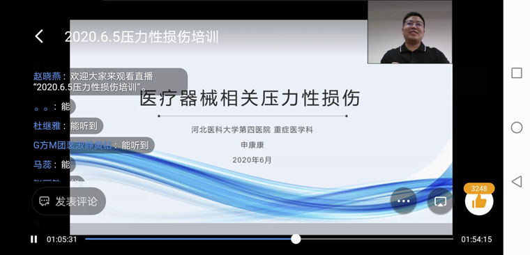 本次培训活动还设置了线上交流环节。多位听课护士长、护士就临床工作中遇到的关于患者皮肤压力性损伤护理问题在线向专家请教,尹护士长一一进行了指导交流。