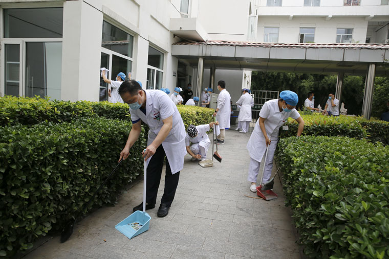 东院的卫生区包括诊区、病区、教学楼、大厅、步行梯、公共通道、职工食堂、花园绿化带等不同区域,场地分散,任务繁多。东院党办室、工会和后勤保障处结合科室分布、工作性质、党员人数等具体情况,为各党支部划分了各自的责任区,分片包干,分头负责。