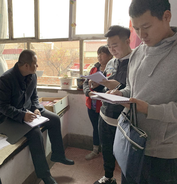 曹争(右1)走访入户