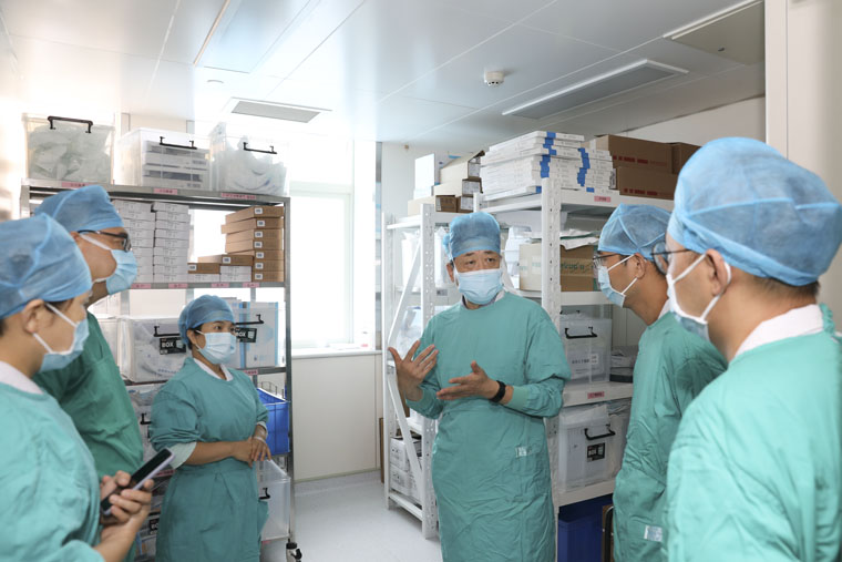 7月21日上午,刘运江副院长带领院办室、医务处、护理部、药学部等职能部门负责人到急诊科、麻醉科、手术室、放疗科一病区、药库等地进行行政查房,现场了解问题、解决问题。
