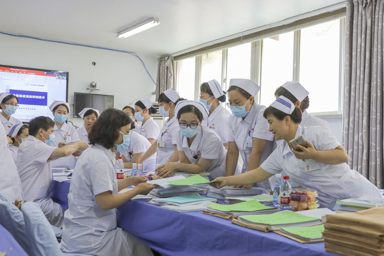 院领导高度重视本次评审,耿翠芝副院长、刘运江副院长积极指导、部署。在护理部的统筹安排下,李来有主任和陈璐、刘风侠、梁军利、赵晓燕、秦明祎副主任分别负责一个基地资料审核和现场评审准备工作。7月22日,20名评审专家逐一对申报基地进行查阅资料,查看设施、设备及信息系统,对带教师资的专科护理技术操作和授课能力进行测评等,他们充分肯定了我院在专科教学基地的管理体系、教学能力和基地建设等方面的扎实积淀,最终,重症、静疗、伤口造口失禁、安宁疗护4个专科成功通过评审。