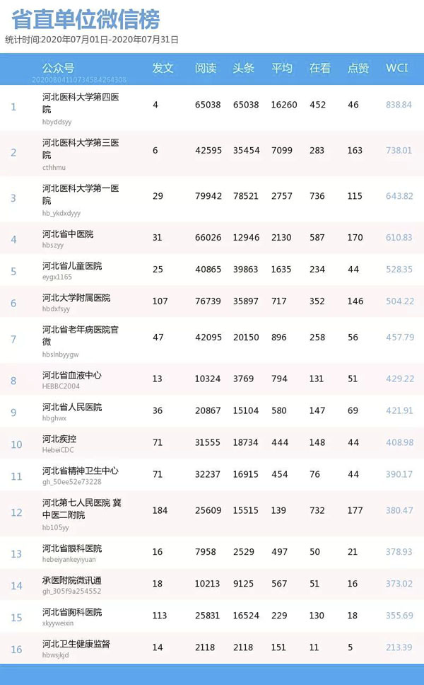 备注:数据由清博大数据提供支持,如对榜单有所疑问或建议,可以通过“河北卫生健康”微信公众号留言或发送邮件至jiankanghebei@163.com。
