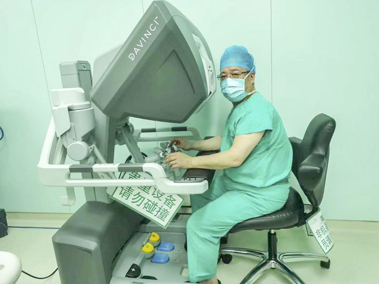 我院外二科微创手术率已达90%以上,可熟练应用3D腹腔镜、荧光腹腔镜系统进行胃肠肿瘤微创手术。第四代达芬奇手术机器人的引进更是如虎添翼,目前已陆续开展了近40例机器人结直肠癌手术,它的优势非常明显,可在盆腔狭窄的空间内完成显露、解剖、缝合等精准操作,三维图像清晰,操作精准稳定,对提高患者保肛率、减少排尿功能障碍及术后性功能障碍有显著成效。