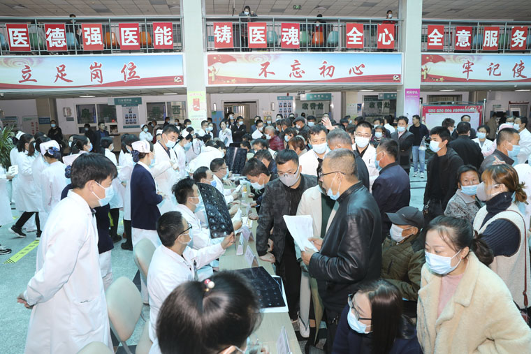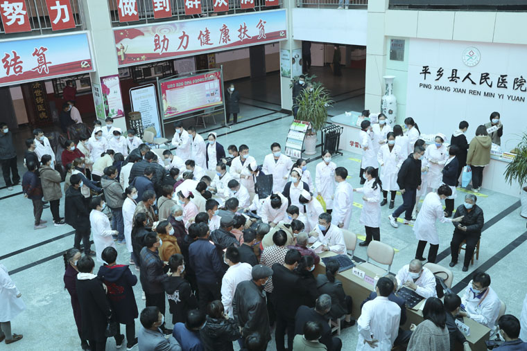 在开幕式上,我院党委书记单保恩通过视频致辞,强调了早期筛查的重要性,我院党委副书记李晓玲、九三学社石家庄市委驻会副主委侯俊宏、平乡县人民政府副县长张军良随后致辞,对此次义诊活动给予了高度评价。参加义诊的专家有我院疼痛康复科刘小立、神经内科刘青蕊、心内科付华、心外科王哲、消化内科张瑞星、肿瘤内科史健、外二科张振亚、输血科赵学涛、胸外科徐新建、中医科刘淑刚、介入科王永中、泌外科李峰等,徐桂芝、刘志敏等20余位护理专家参与会诊。义诊现场,人头攒动,专家们认真询问患者及群众的病史,进行初步筛查、诊断,并给出合理的用药建议。专家们对百姓普遍关注的常见病、慢性病以及中医调理、心理健康、疾病预防、合理用药等方面的问题进行了宣讲,发放了相关的宣传手册,取了良好的效果。群众们对专家精湛的医术和贴心的服务连连称赞。