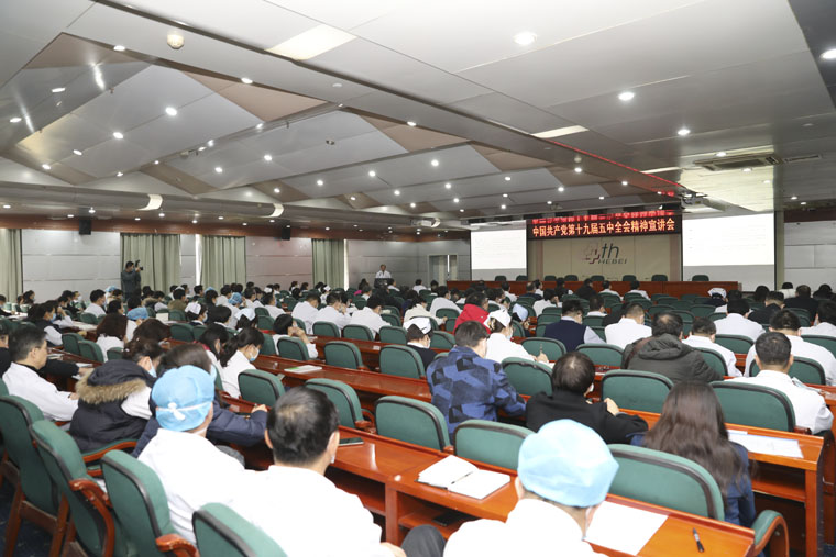 12月2日,我院在本部放射治疗楼四层多功能报告厅召开党的十九届五中全会精神宣讲会,党委书记单保恩结合我院“十四五”规划对党的十九届五中全会精神进行解读宣讲,党委副书记李晓玲主持会议,全体院领导、党务部门负责同志、各党支部书记、支部委员等参加。