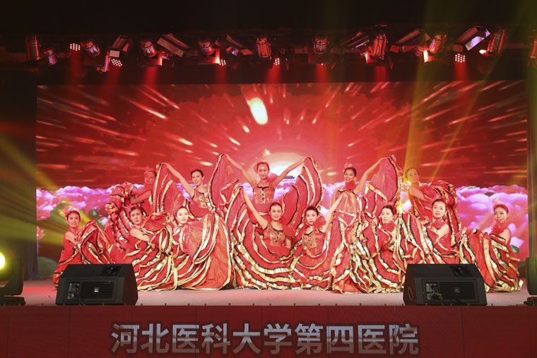 我院用精心准备的配乐朗诵《大医精诚》,舞台剧《战癌壮歌》、《心系赞皇》,舞蹈《迈进新时代》、《红烛》、《共圆中国梦》,民乐演奏《良宵》,歌曲《为了谁》,快板表演《医路逐梦》,合唱《河北医大四院院歌》,大型歌舞《白衣薪火》以及老前辈和青年人拍摄的祝福视频等形象生动地展现出一代代四院人在不同历史时期,用医者仁心和大爱无疆诠释医学誓言的感人事迹,表达了对建院65周年的热情庆祝和殷切祝福。现年85岁的林元珠教授在接受采访时说:“能够参加建院65周年纪念表彰大会让我感到非常荣幸,支撑我在医学领域不断探索、努力工作的动力就是因为我有为共产主义事业奋斗终生的伟大信仰。希望年轻的四院人能够胜过我们,长江后浪推前浪,一代更比一代强。”