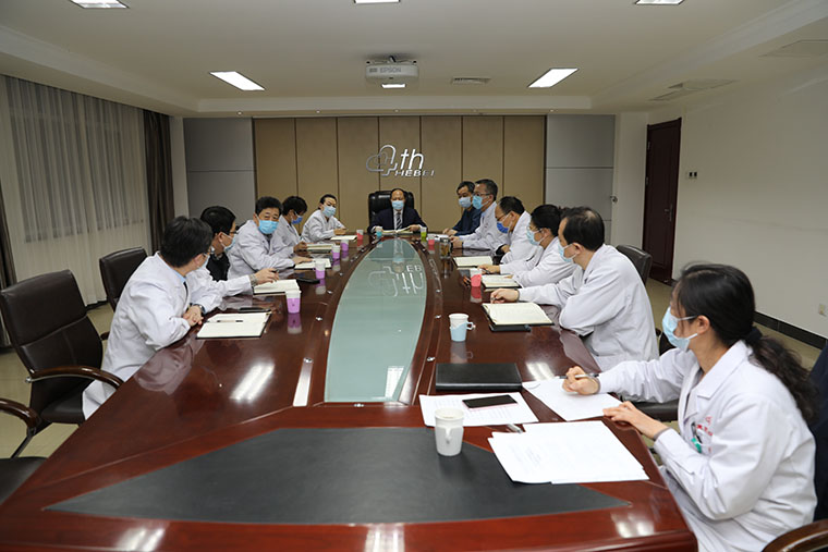 徐金升院长首先传达了“国务院应对新型冠状病毒肺炎疫情联防联控机制综合组关于河北省石家庄市藁城人民医院、新乐市中医院新冠肺炎疫情院感防控不力情况的通报”,及省院感防控工作会议精神。针对我院院感防控工作提出工作要求和部署,徐金升院长强调院感防控是当前医院一项重要工作,要求完善医院疫情防控期间三级院感防控体系建设,建立督导检查方案,建立质量控制标准。压实各部门职责,加强对重点部门、区域、人群、环节的院感工作的监管。严格落实院感防控知识的全员培训,提升医务人员院感防控意识和能力。