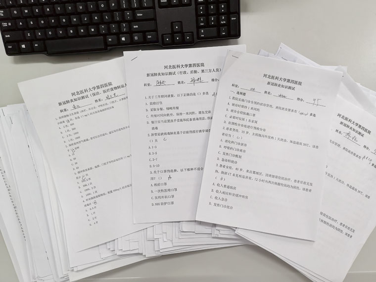 针对全院不同岗位人员进行新冠知识考核