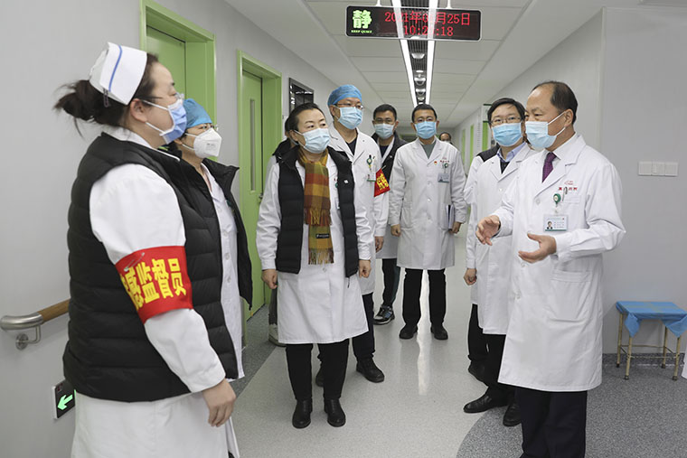 为严格落实1月21日河北省疫情防控工作视频会议精神和《河北省医疗机构感染防控若干措施》,持续加强医院疫情防控和院感防控工作,1月25日上午,我院党委书记单保恩、副书记李晓玲、副院长翟三江、何宏涛、彭利带领党办、医务处、护理部、院感科、人事处、设备处、基建处、后勤保障处、保卫处、宣传部等职能部门负责人开展了专题政工查房。