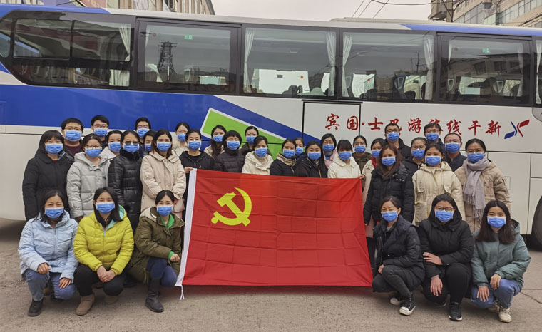 为坚决打赢新冠疫情防控歼灭战,充分发挥党支部战斗堡垒作用和党员先锋模范作用,1月20日,经医院党委研究决定,成立援助无极核酸采集抗疫医疗队临时党支部,由曹峰同志任党支部书记。医院党委为临时党支部授旗,并通过电话向一直坚守在无极防控一线的同志们表示慰问,希望大家始终坚持人民至上、生命至上,高标准完成防控任务,让鲜红的党旗在抗疫一线高高飘扬。