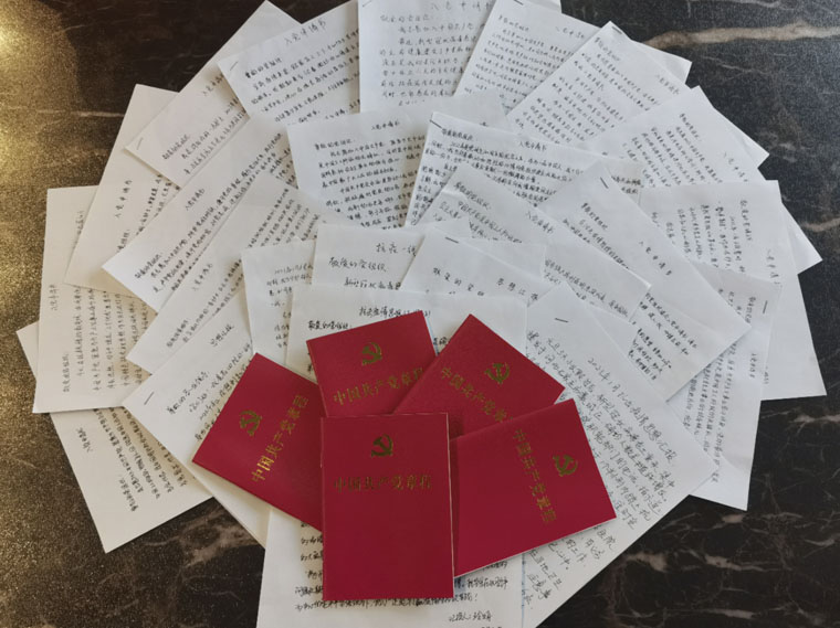 在党员先锋模范作用的感召下,无极核酸采集队已有20多名队员递交了入党申请书。在他们执行任务的第15天,全体队员集体签下请战书,要求继续坚守阵地,战斗到底,直到迎来最后的胜利。