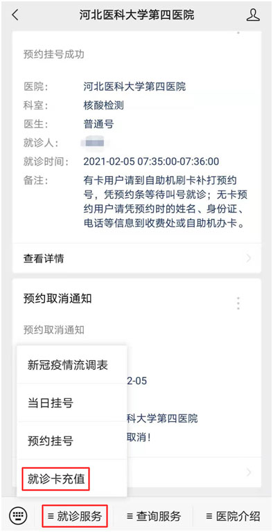 点击“就诊服务”,选择就诊卡充值,充值80元以上。