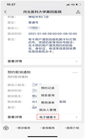 二、建“电子健康卡”(有就诊卡,并绑定我院微信公众号的,不需要建“电子健康卡”)。