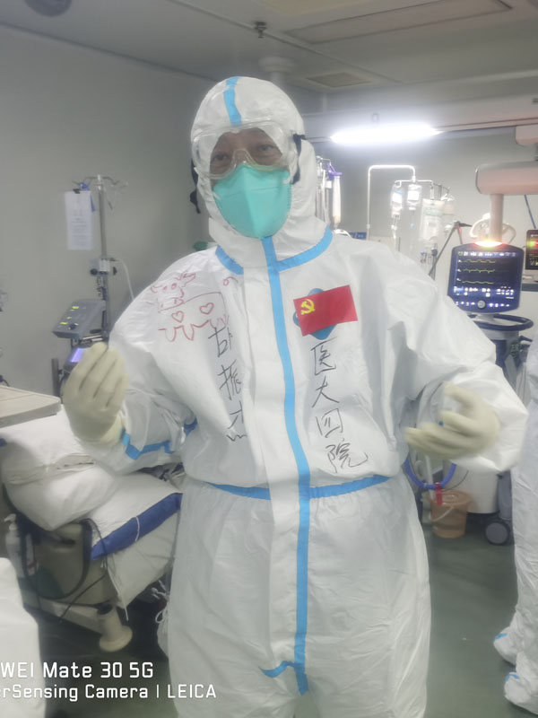 大年初一,重症医学科胡振杰坚守省胸科医院第一线,指导工作。