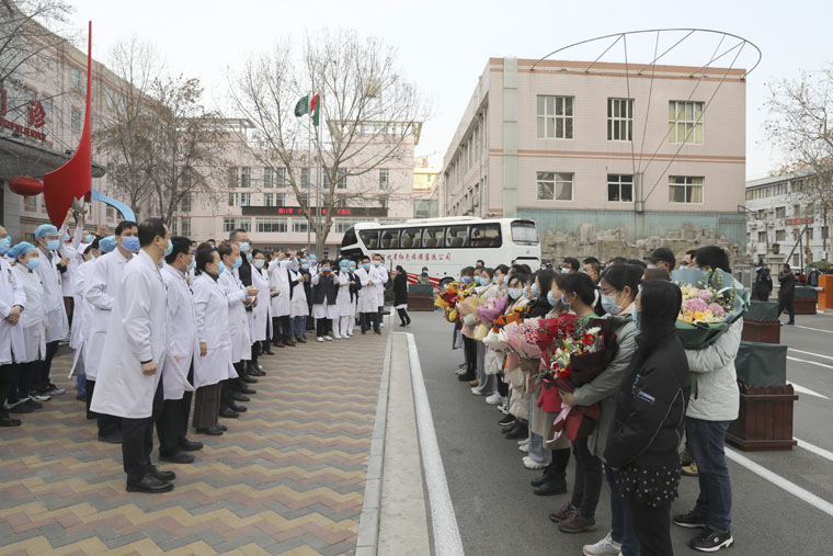 单保恩书记致欢迎辞,他说,30天来,你们30名队员深入石家庄疫情防控最危重的地区藁城,直面病毒、克服困难、连续作战、坚守到底,同时充分发挥了临时党支部的战斗堡垒作用和共产党员的先锋模范作用,不负党和人民的重托,圆满完成任务,为打赢这场疫情防控歼灭战贡献了积极力量,大家都是好样的!现在正是春暖花开的季节,希望大家好好休息,享受美好的春天。临时党支部书记李志红代表全体队员发言,她动情地说,正是因为有院党委对队员们生活、工作还有家人的关心、照顾,有四院这个强大的后盾,大家才能义无反顾、奋勇拼搏,在一线挥洒青春和热血,以后还要在各自的岗位上为医院的发展做出更多贡献。