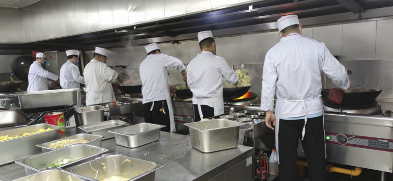 食堂所有人员加班加点工作,由于上午准备的菜品、主食只够中午使用,下午和晚上还要加班准备晚餐和第二天早餐的食品。大家每天工作10几个小时,虽然辛苦,但都顺利完成了任务,他们在工作群里相互鼓励,“现在要说不累是假的,但这就是我们应该做的”,一位职工说道。