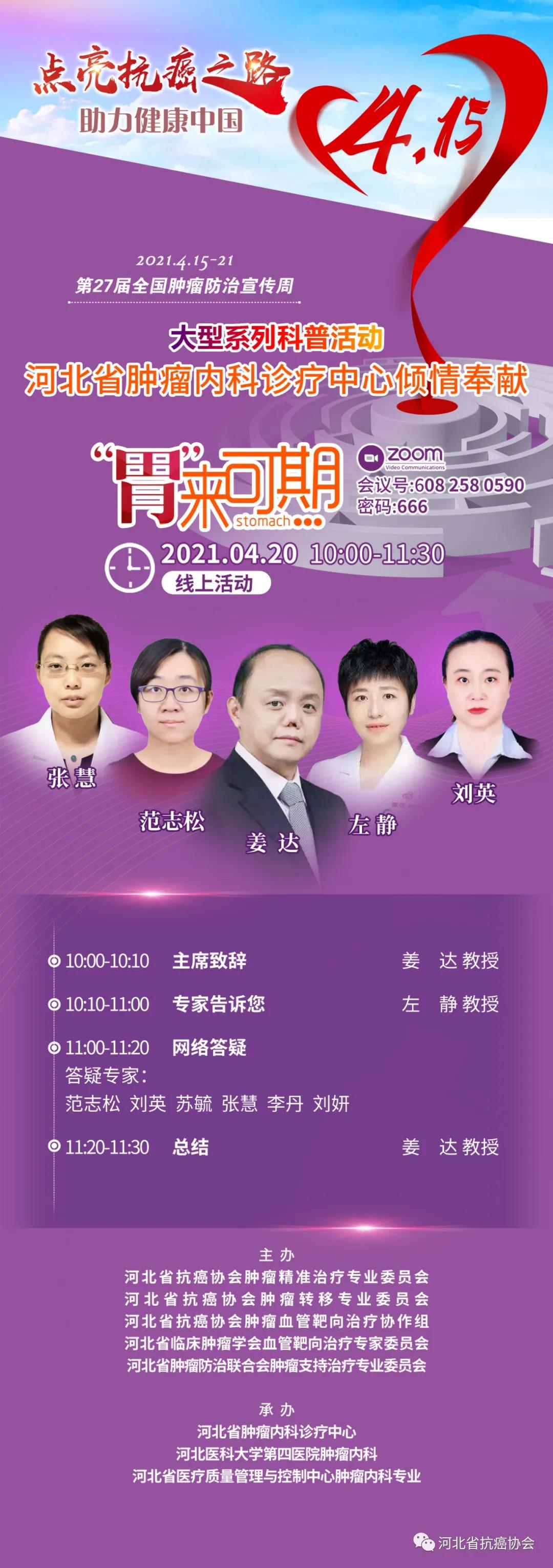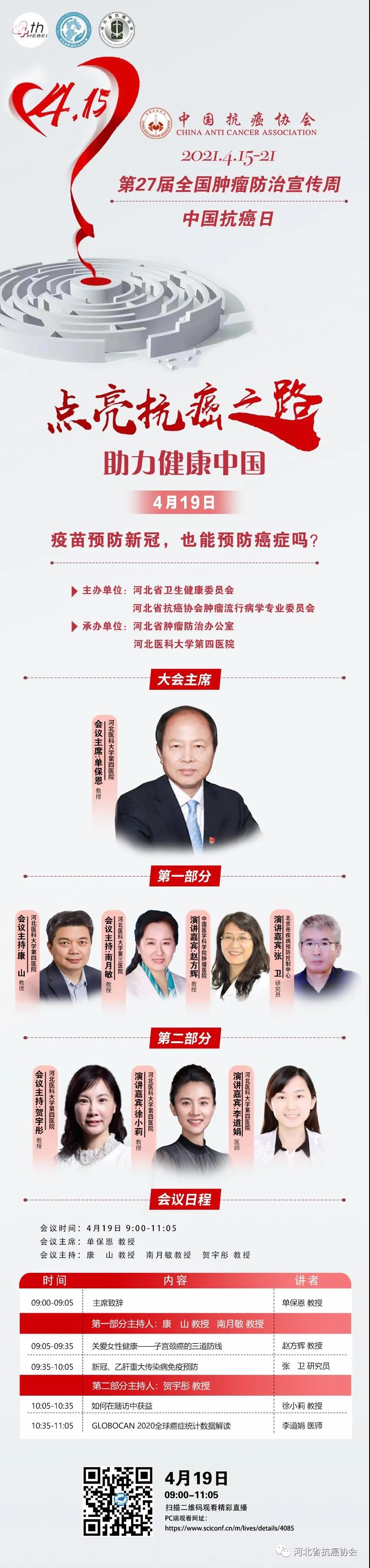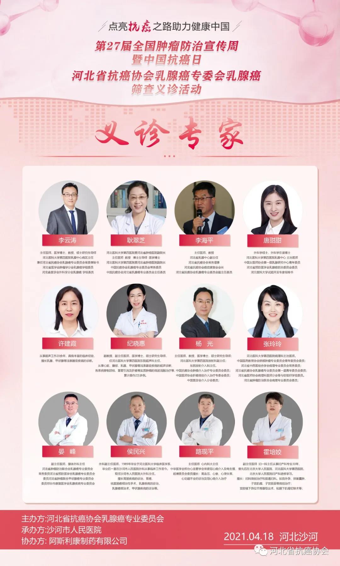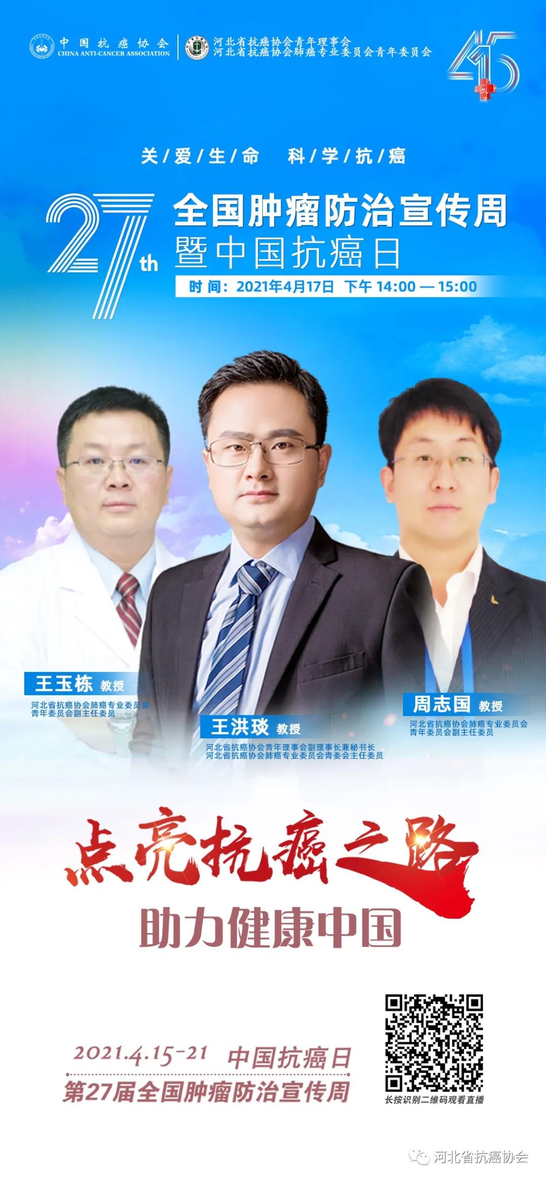 在为期一周的活动中,河北省抗癌协会、河北省癌症中心、各专业委员会、各市抗癌协会都将相继举办形式多样的防癌科普宣传,以医务工作者火热的爱心点亮抗癌之路,助力健康中国!