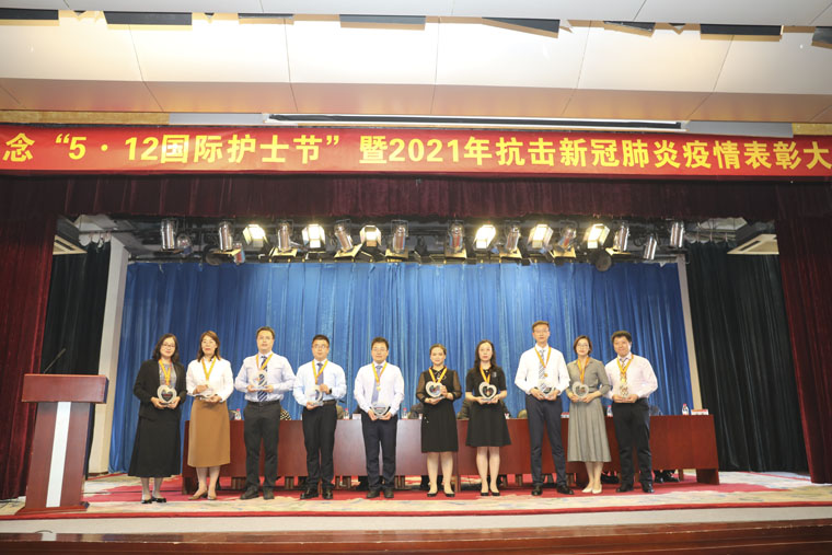 党委副书记李晓玲宣读了2021年抗击新冠肺炎疫情先进集体和先进个人表彰决定,院领导为受表彰人员代表颁奖。邢亚威、于斌作为抗疫先进代表上台分享抗疫经历。徐金升院长表示,希望各部门、各科室要时刻绷紧疫情防控这根弦,继续保持常态化防控意识,做到思想不麻痹、工作不松懈,切实把医院各项防控要求部署落实落细落好,同时要以抗疫先进为榜样,围绕今年医院工作重点,进一步强化责任担当,切实把伟大抗疫精神转化为干事创业、攻坚克难的实际行动,更加奋发有为的推动我院高质量发展。
