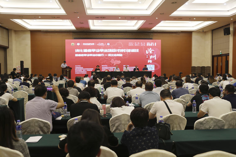 为深入贯彻落实国家《健康中国行动——癌症防治实施方案(2019-2022年)》及《中国防治慢性病中长期规划(2017-2025)年》等文件精神,做好2021年度消化道癌早诊早治项目工作,提高项目承担单位专业技术人员技术水平和业务能力,根据2021年度项目培训计划安排,5月22-30日由中国癌症基金会、国家卫生健康委员会疾病控制局癌症早诊早治项目(农村)专家委员会与河北省卫生健康委、我院主办,河北省癌症早诊早治项目办公室、沧州市人民医院承办,辽宁省疾病预防控制中心、吉林省疾病预防控制中心和海南省肿瘤医院、河北省沧州市卫生健康委员会协办,在河北沧州市举办的“消化道癌早诊早治项目培训班暨癌症早诊早治中国行河北沧州站”活动成功举办。来自河北、辽宁、吉林、海南省79家项目单位参加会议,线下参会人员达到360余人,线上参会人员达到10148余人次。