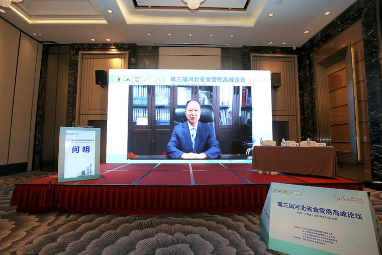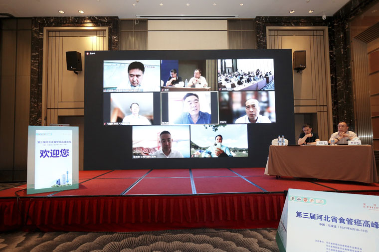 6月18-19日,由河北省抗癌协会食管癌专业委员会、河北省临床肿瘤学会食管癌专家委员会、河北省医学会肿瘤学分会食管学组主办,我院承办的第三届河北省食管癌高峰论坛在石家庄举办。河北医科大学党委常委、副校长,我院党委书记单保恩教授,中国抗癌协会食管癌专业委员会主任委员、中国医学科学院肿瘤医院深圳医院于振涛教授分别致开幕词。我院胸外科田子强教授担任大会主席,何明教授主持开幕式。本次高峰论坛设1个主会场,3个分会场,共邀请200余名专家学者在线上、线下参加会议,就食管癌治疗领域的热点及难点问题进行深入交流讨论。