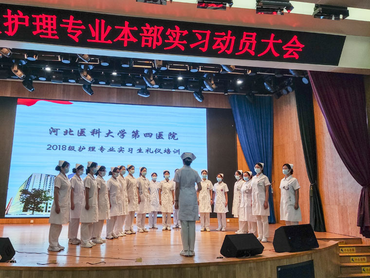 在实习动员会上,单保恩书记从医院发展概况、思想文化建设、服务理念等多方面全景介绍了我院,他叮嘱同学们,临床实习是学生对所学知识进行检验,是积累初步工作经验的重要学习环节,同学们要勤劳、谦逊、细心、守时,以积极认真的态度参加实习,希望同学们在实习过程中能够得到历练和成长。之后,护理教学办公室的范晓丹副主任、吴景梅老师、李慧娟老师向同学们介绍了实习相关内容和管理要求。