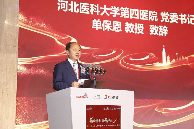 河北医科大学党委常委、副校长、我院党委书记单保恩在致辞中指出,今年正值建党100周年,是党中央离开西柏坡进京“赶考”71周年。71年砥砺奋进,我们的国家发生了天翻地覆的变化,是中华民族历史上一部感天动地的奋斗史诗。肿瘤高峰论坛以中国革命圣地西柏坡命名,是要追溯新中国从西柏坡走来的历史,深刻领会两个务必的重要思想,发扬光大敢于斗争、敢于胜利、图强自律的西柏坡革命精神,为我们进一步推进党的建设,巩固和加强中国共产党的执政地位,践行全心全意为人民服务的根本宗旨,不断把社会主义事业推向前进具有十分重要的意义。我们要时刻不忘初心,牢记历史,砥砺前行,在抗癌征程中再接再厉、敢于斗争、勇于胜利。