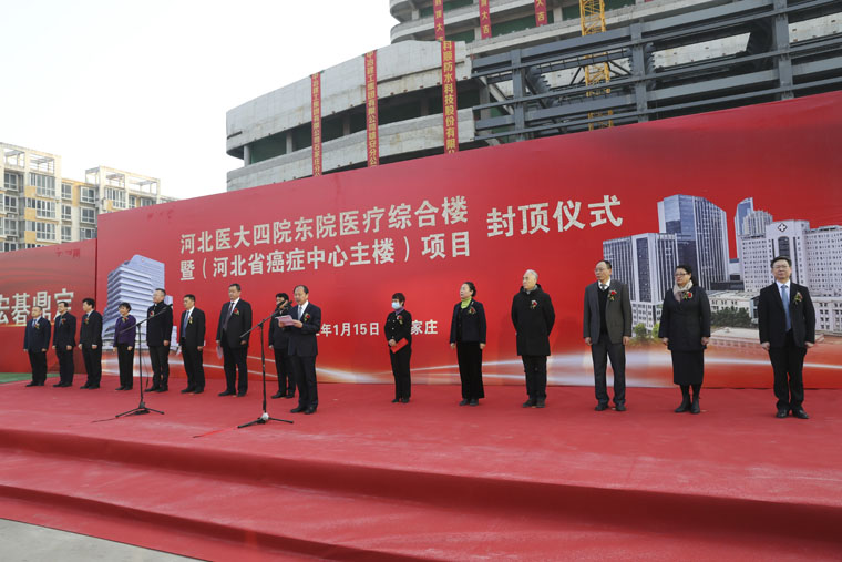 1月15日,我院医疗综合楼(河北省癌症中心主楼)主体结构封顶仪式在东院新院区西广场隆重举行。医院党政领导单保恩、徐金升、李晓玲、李立平、耿翠芝、翟三江、刘运江、魏迎、赵群、彭利,石家庄高新技术产业开发区管委会工委书记、管委会主任李瑞峰,工委委员、科技创业园区管理处主任丁飞燕,施工、监理、设计单位相关负责人,以及我院干部职工等参加。按照施工进度,大楼将于2024年完工,造福河北省乃至华北地区的广大群众。
