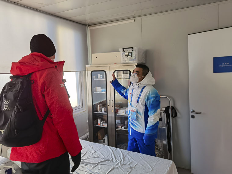 2022年2月5日下午,国际奥委会医疗和科学部主任Richard Budgett先生到我院医疗保障场馆即国家冬季两项中心运动员医疗站参观考察,Richard Budgett仔细询问了医疗站的接诊流程、转诊记录、电子病例录入保存和信息审核等内容,对特殊药品如甘露醇的恒温箱保存等细节给予认可,对运动员医疗站的设置及运行表示肯定,对我院医疗保障队员的严谨负责的态度给予了高度赞扬。