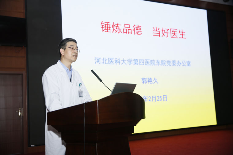 东院党办主任郭艳久和门诊部主任江锦平分别以《锤炼品德 当好医生》和《做更好的医疗服务》为题向大家讲述了一名合格的医生必须德才兼备,要学会用良好的医患沟通方式和有效的措施处理医疗纠纷。会后,同学们展开了热烈的讨论,大家认为,学好专业知识是前提,还要不断提高自身综合素质,更要坚定理想信仰,为国家医药卫生事业作出贡献。