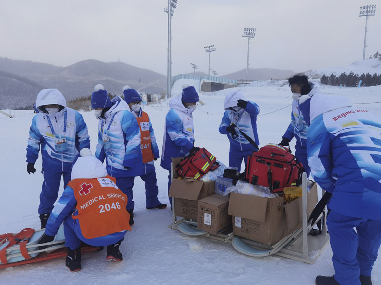 “办好北京冬奥会、冬残奥会,是中国对国际社会的庄严承诺。”在我院党委、院领导及全体医疗保障队员所在科室的大力支持下,1月27日至3月13日,我院54名冬奥医疗保障队员众志成城、守护担当,在崇礼赛区国家冬季两项中心的观众医疗站、FOP(赛道)医疗站、运动员医疗站以及云顶滑雪公园等地出色完成了各项医疗保障任务,为67场竞赛,17场官方训练、34场非官方训练提供了及时、专业、高效的医疗保障服务。期间救治伤病员40余人次,其中外籍人员16人次,随访显示因救治及时有效,所有伤病员均已良好康复。他们为冬奥会、冬残奥会高质量服务保障体系贡献了四院智慧和力量。