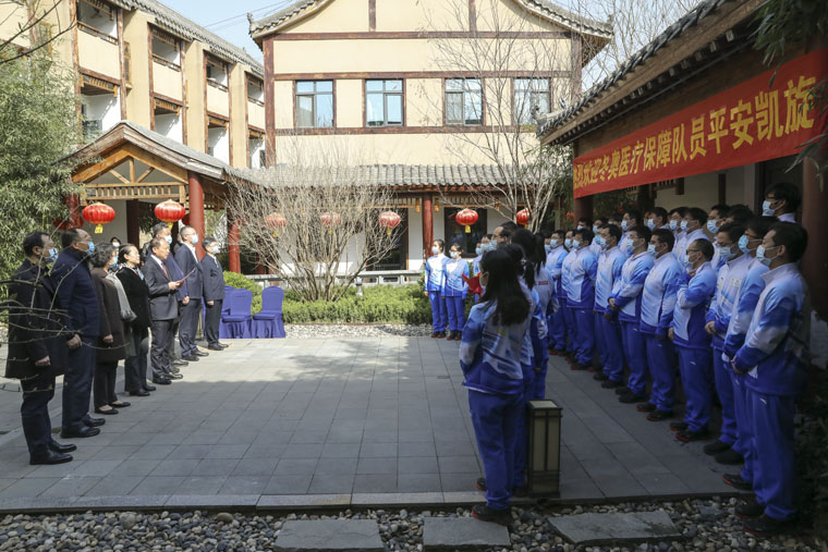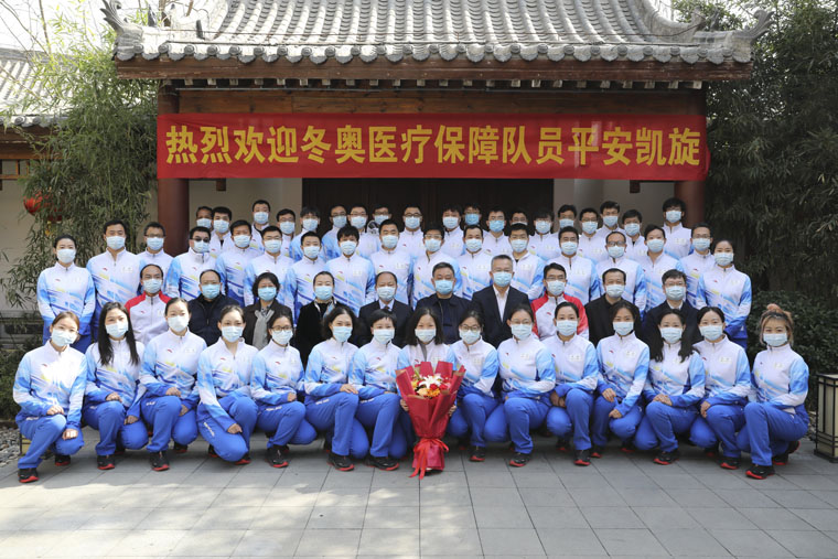 草木蔓发,春山可望。3月28日,我院党政领导单保恩、徐金升、李晓玲、李立平、耿翠芝、翟三江、赵群、彭利等赴冬奥医疗保障队员隔离处,在集中隔离结束之时,为大家举行平安凯旋欢迎慰问仪式,党办室、院办室、医务处、护理部等相关负责人及全体冬奥医疗保障队员参加。