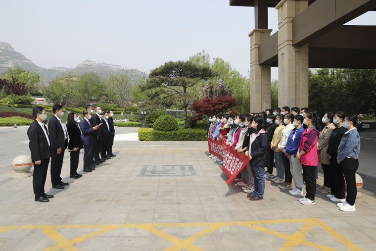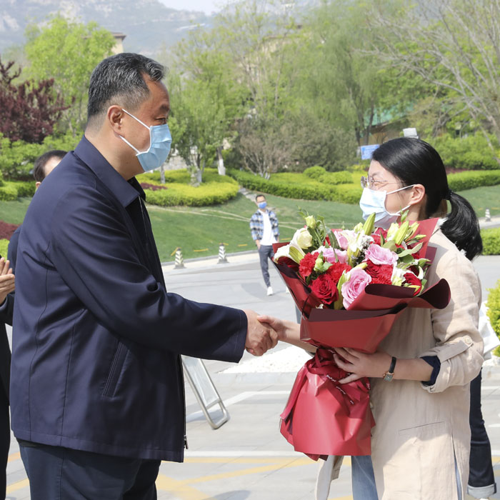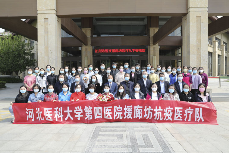 春光明媚,勇士凯旋。4月18日,我院党政领导单保恩、徐金升、李晓玲、李立平、何宏涛、赵群、彭利等专程赴支援廊坊抗疫医疗队隔离处,在集中隔离结束之时,为刘运江副院长和队员们举行慰问仪式,党办室、院办室、医务处、护理部等相关部门负责人参加。