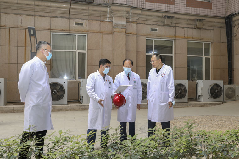 4月24日,我院党委书记单保恩和院领导李晓玲、李立平、翟三江带领党办、监察室、基建处、设备处、后勤保障处、宣传部等部门负责人,围绕我院北楼施工建设和院区绿化美化情况开展了政工查房。