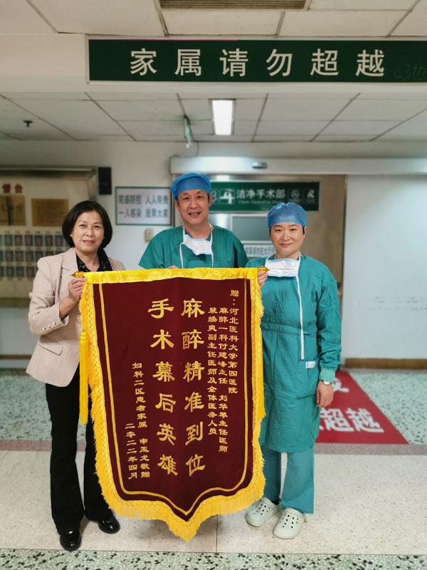 近日,我院麻醉一科收到一名患者家属送来的锦旗,“麻醉精准到位,手术幕后英雄”,短短12个字,真切体现出患者及家属对麻醉一科人员在合并症多、围术期风险大的手术中做到精准麻醉的赞扬与认可。“真心感谢你们,解决我们家困扰多年的难题”。